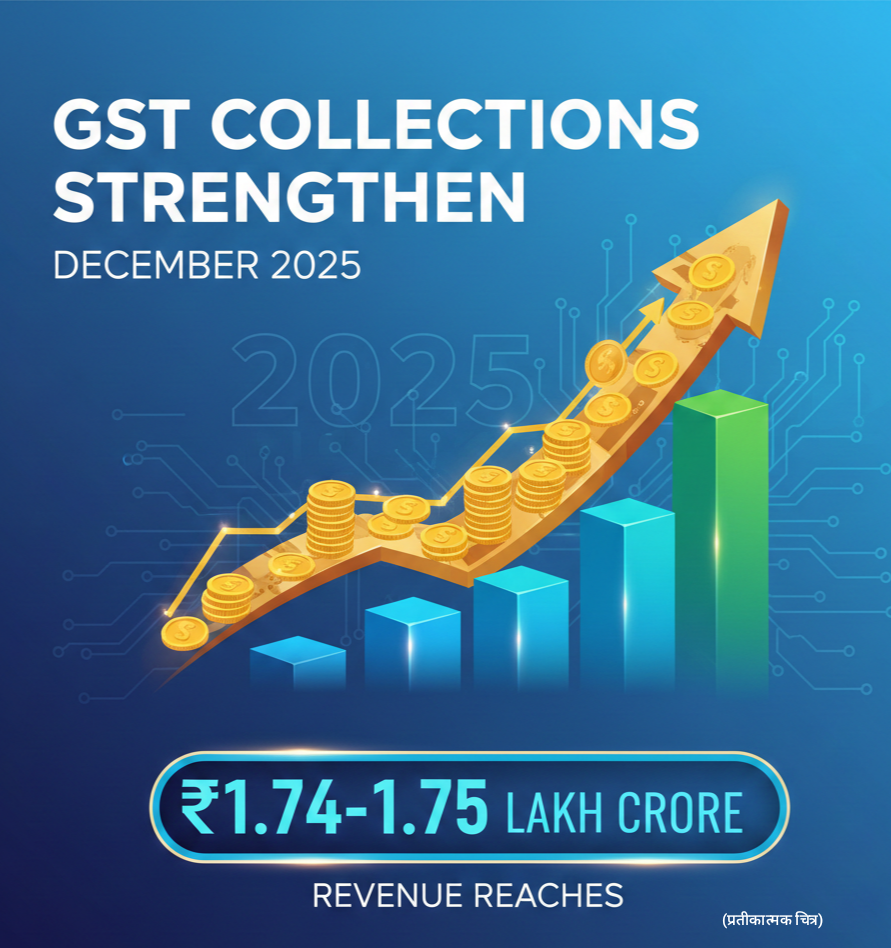 दिसंबर 2025 में GST संग्रह में मजबूती — राजस्व ₹1.74-1.75 लाख करोड़ हुआ
